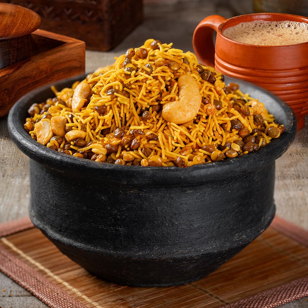 Our Dal Mixture offers the comforting taste of traditional homemade snacks. Made from crunchy lentils and mild spices, it brings a familiar, irresistible flavor that appeals to all ages.